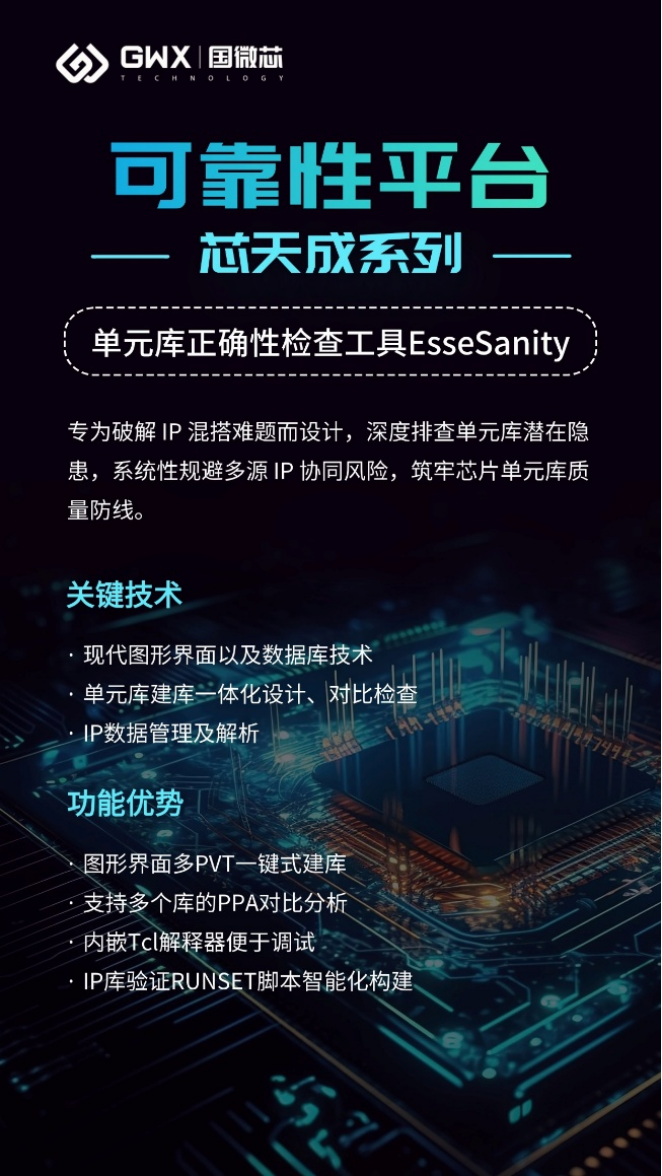 国微芯EsseSanity持续更新升级。其采用现代图形界面以及数据库技术,能快速分析管理验证海量单元库,快速定位单元库的潜在问题,同时提供IP快速查看功能,帮助用户掌握IP数据的整体情况,大大提高建库人员和设计人员的协同工作效率。目前,其 IP 管理功能已成功集成到某头部大厂 3nm 设计流程中,获得了行业内的高度认可与信赖。
