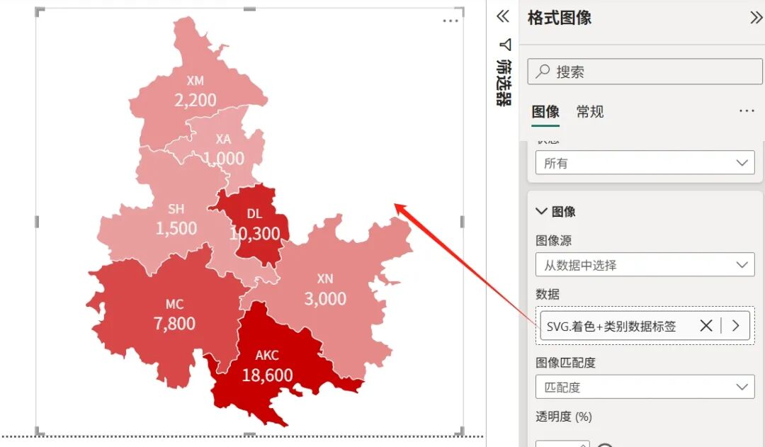 并且图像源支持从数据中选择,即支持展示DAX结合SVG制作的图表。