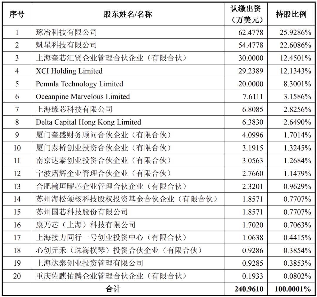 奎芯科技的股权结构显示,陈琬宜女士通过控制琢冶科技有限公司、魁星科技有限公司、上海奎芯汇贤企业管理合伙企业(有限合伙)、XCI Holding Limited、PemnlaTechnology Limited 合计控制奎芯科技 81.4216%股权。