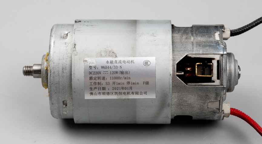 这款直流有刷电机的型号为WKH44/33-N,额定供电电压为220伏特,额定功率为120瓦特,其工作模式为间歇式工作,即运行1分钟、停止1分钟,以此保护电机,延长其使用寿命。