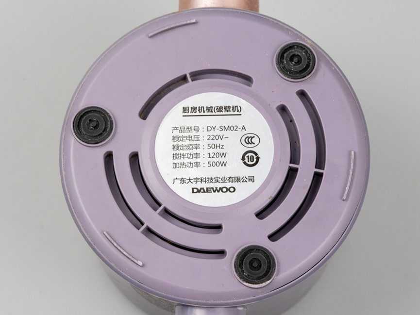 我们先从底座开始拆解,这款破壁机的搅拌功率为120瓦特,加热功率为500瓦特,属于典型的小功率厨房电器,日常使用中耗电量相对较低。