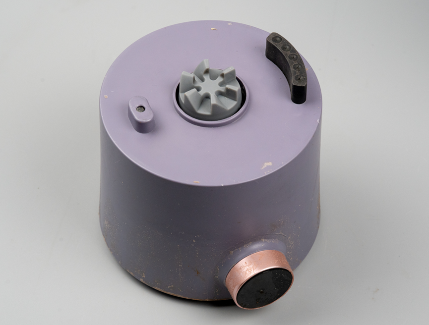 它的底部装有从动齿轮,放置在底座上时,会被底座的传动齿轮带动,进而驱动内部刀头高速旋转,实现破壁功能。