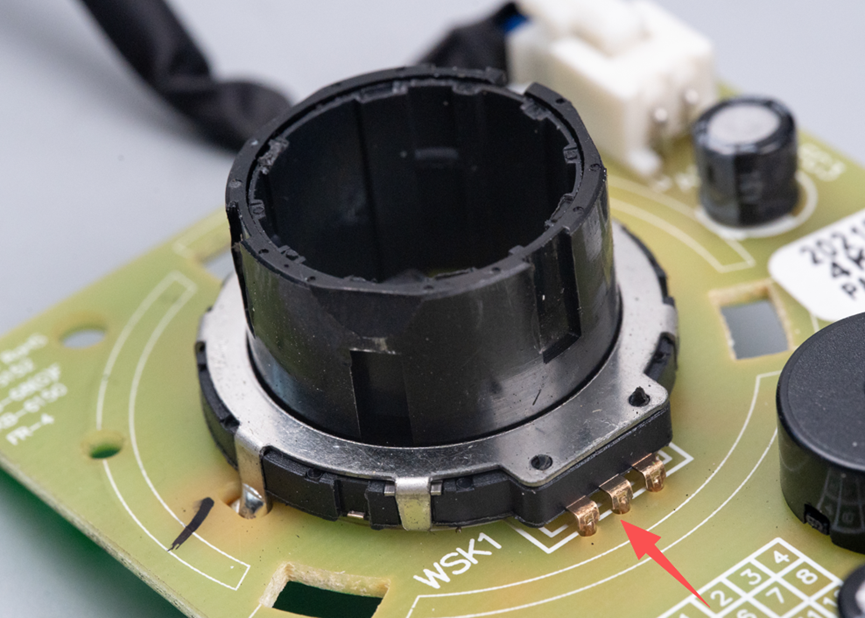 旋钮的最外侧一圈是一个电位器,通过旋转旋钮,可以调节电位器的阻值,进而实现设备工作模式、转速或温度的调节,操作便捷。