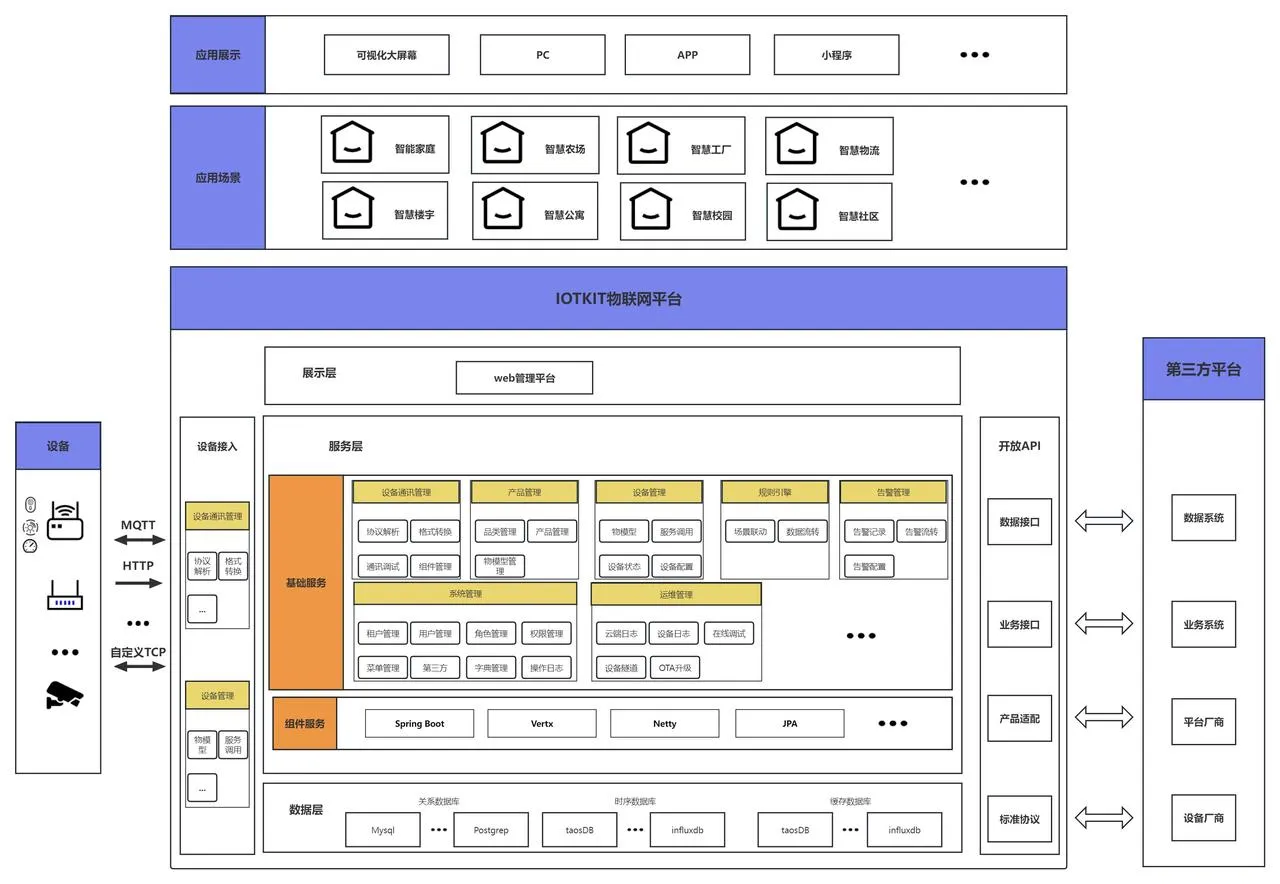 铱塔智联开源平台: 是一个开源的物联网基础开发平台,旨在提供物联网及相关业务开发的常见基础功能,帮助用户快速搭建自己的物联网相关业务平台。