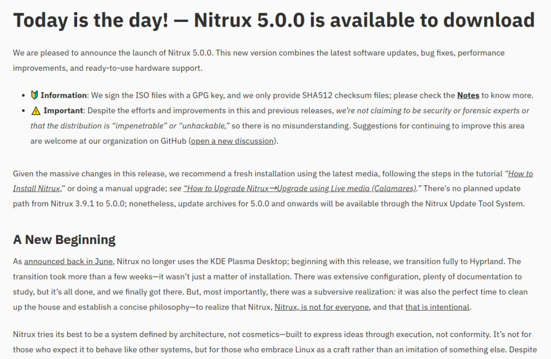 Nitrux 5.0 的发布标志着该发行版在不可变系统、现代化桌面体验与硬件兼容性上迈出了重要一步。