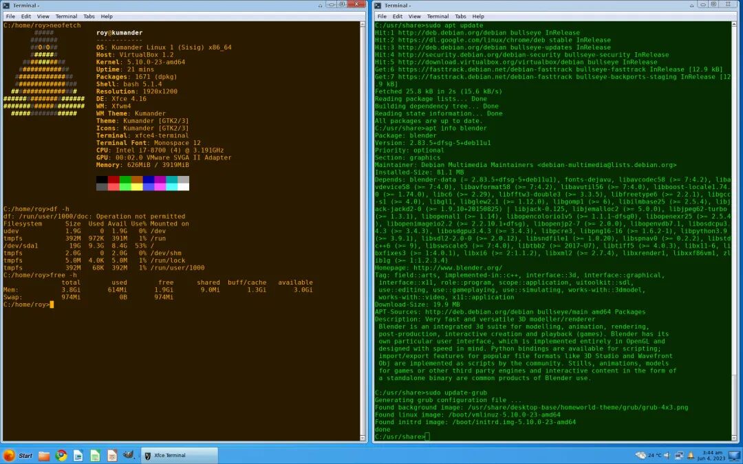 Kumander Linux 2.0(Bufalo)基于 Debian 12.10,搭载 Linux 6.1 LTS 内核,使用 Xfce 4.18 桌面环境。