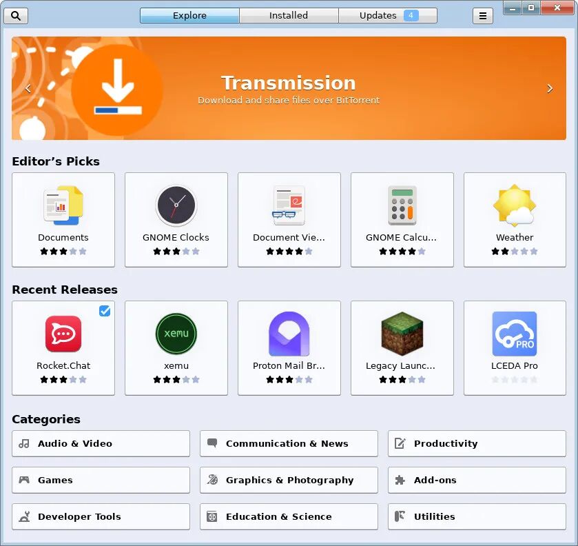 但需注意,系统软件中心中的大部分应用以 Flatpak 形式提供,可能会增加存储占用。