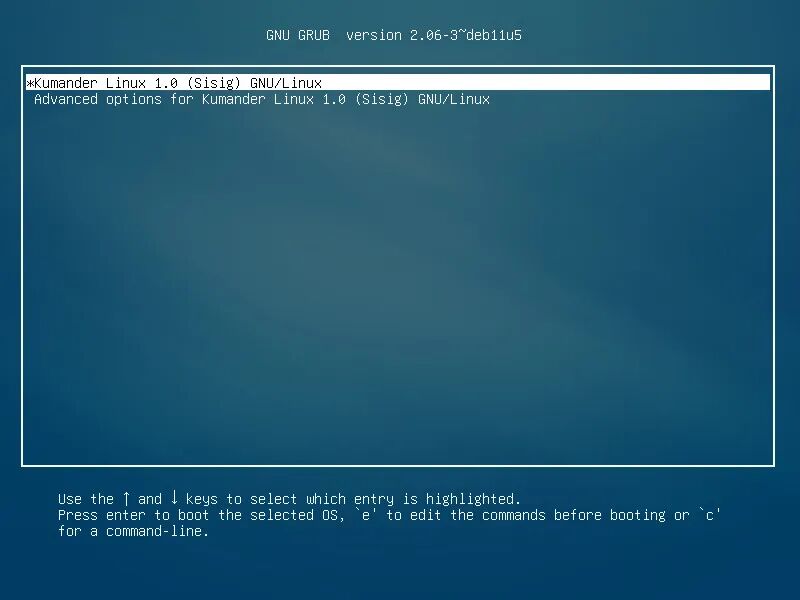 要安装 Kumander Linux,用户需要在启动菜单中选择“Start installer”或“Start offline installer”,然后才能进入标准的 Debian 安装程序,按照提示完成安装。