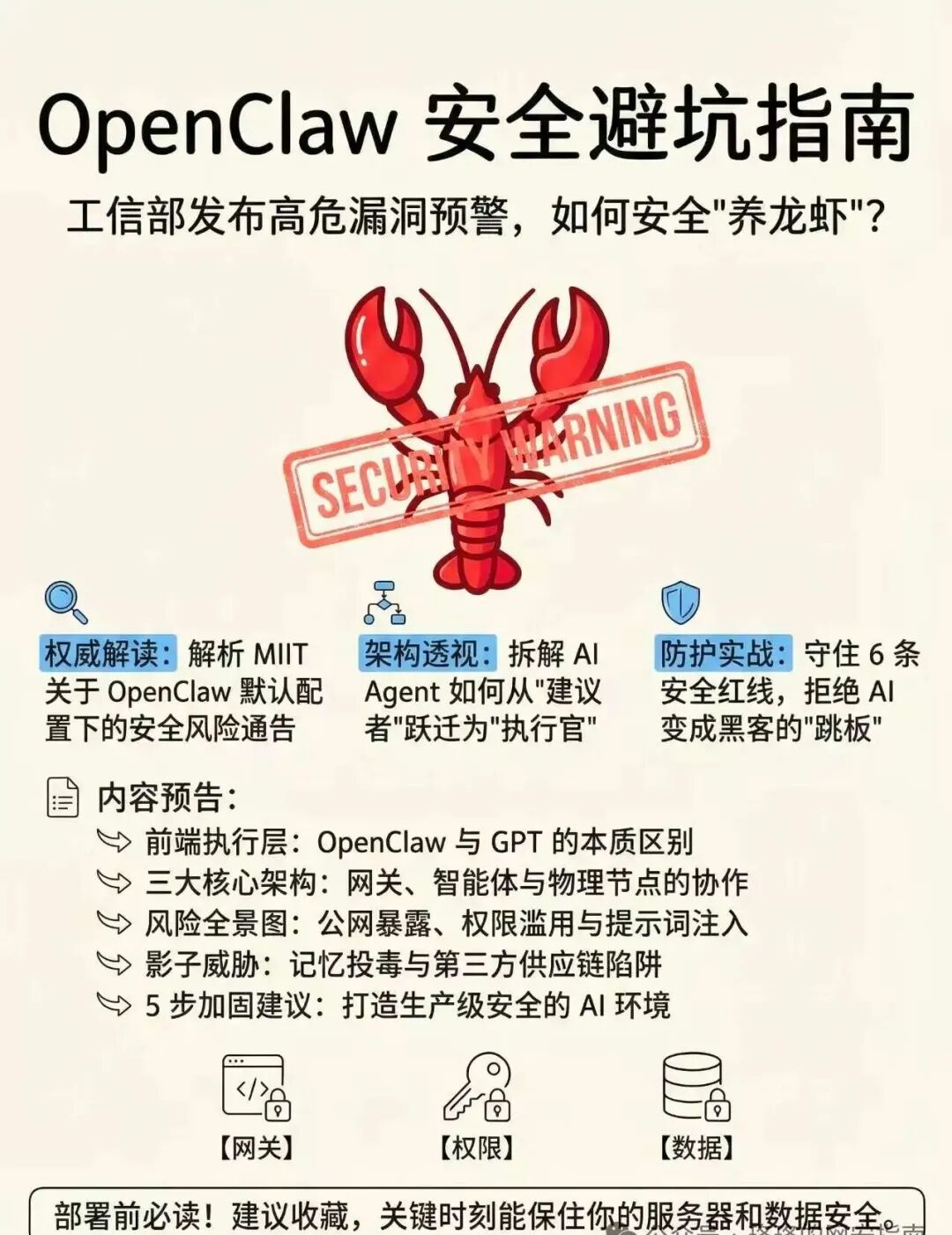 网关安全是OpenClaw防护的第一道防线,必须严格限制公网访问,加强身份验证和授权管理。任何疏忽都可能导致整个系统暴露在攻击之下。