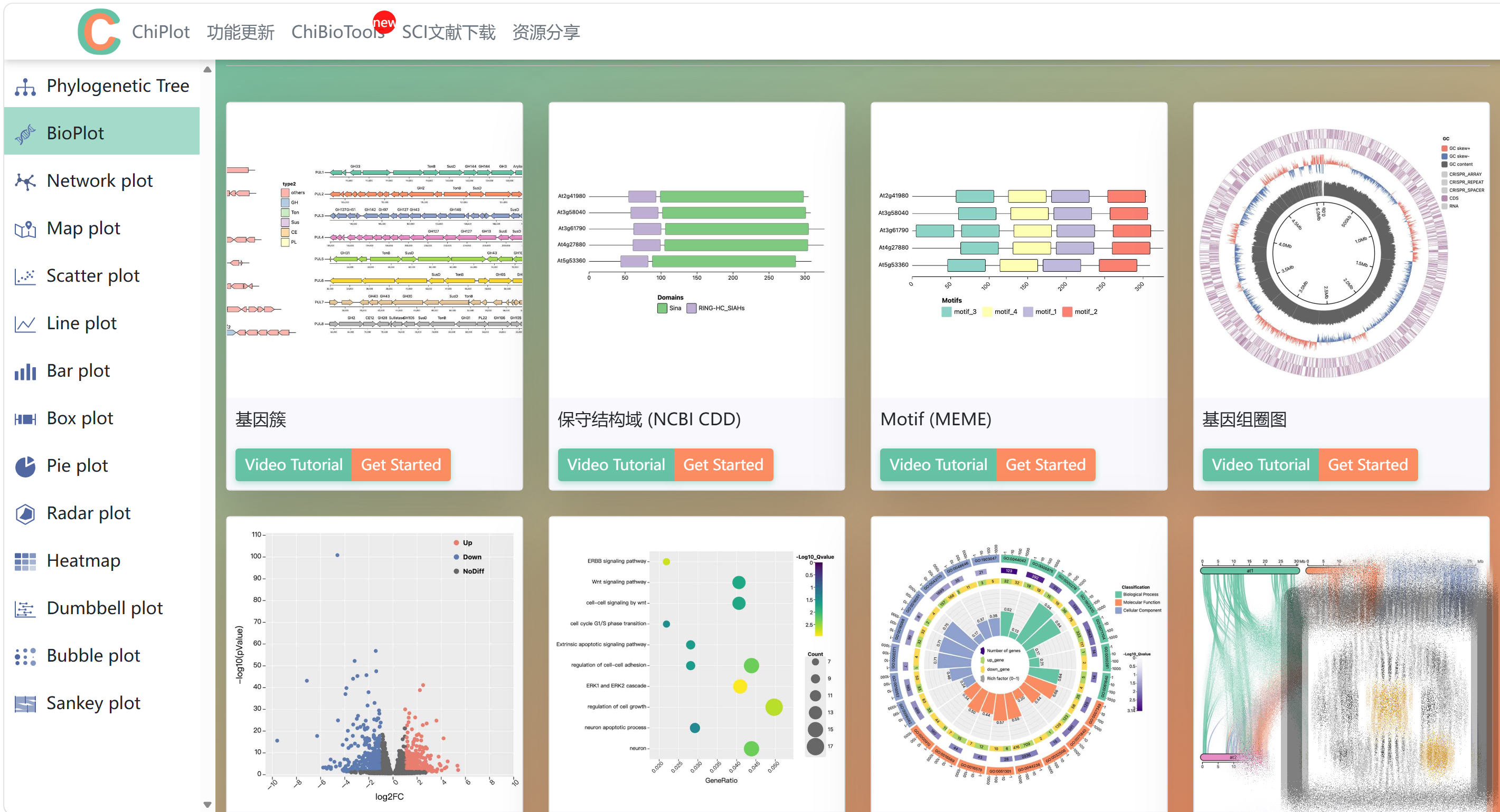 ChiPlot专注于转录组学数据可视化,特别适合RNA-seq和芯片数据的快速分析与初步解读。
