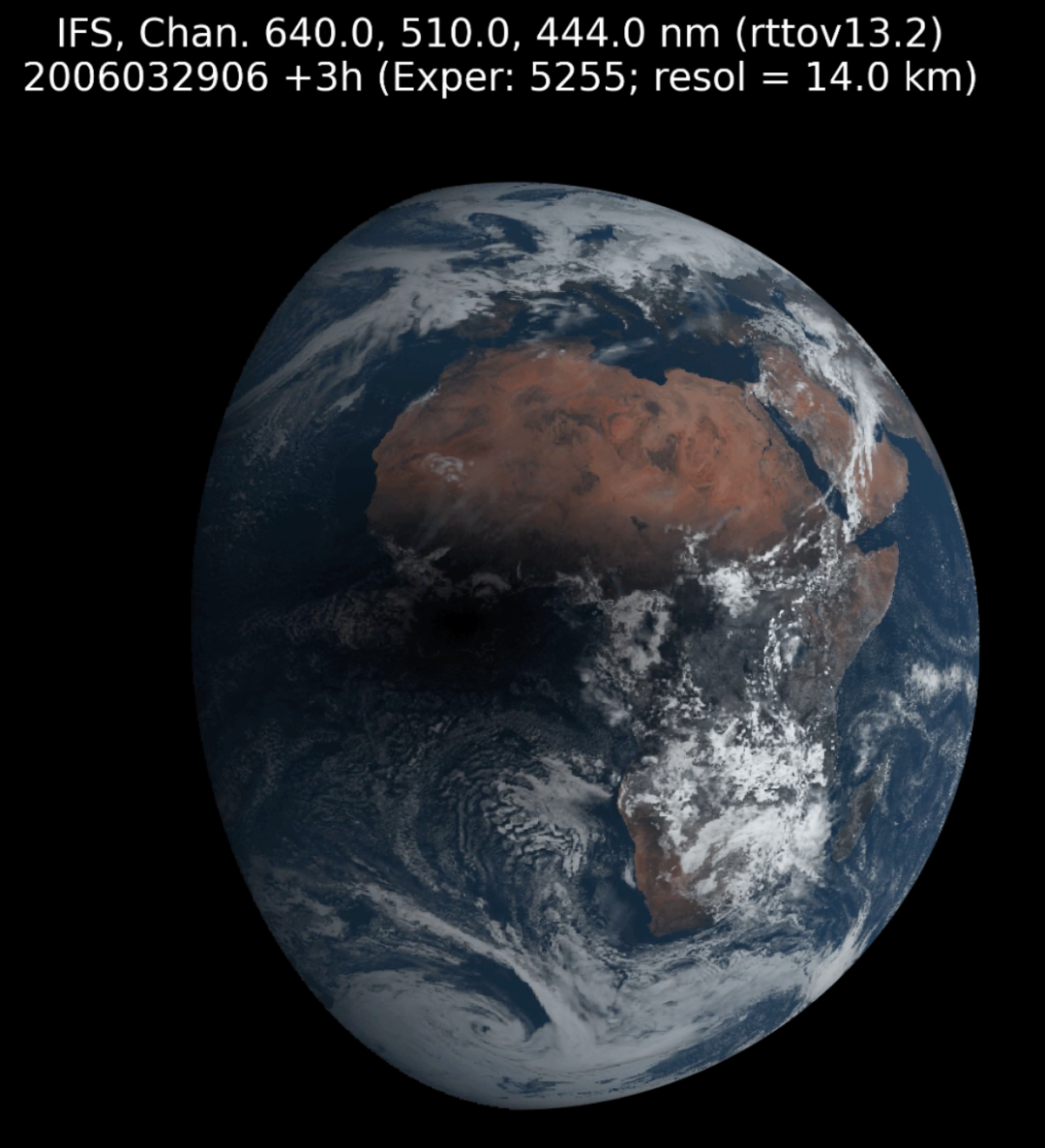 这是根据ERA6,如果MTG在2006年已在轨道上,其搭载的FCI仪器本应观测到的景象。图片由ECMWF/Philippe Lopez提供。