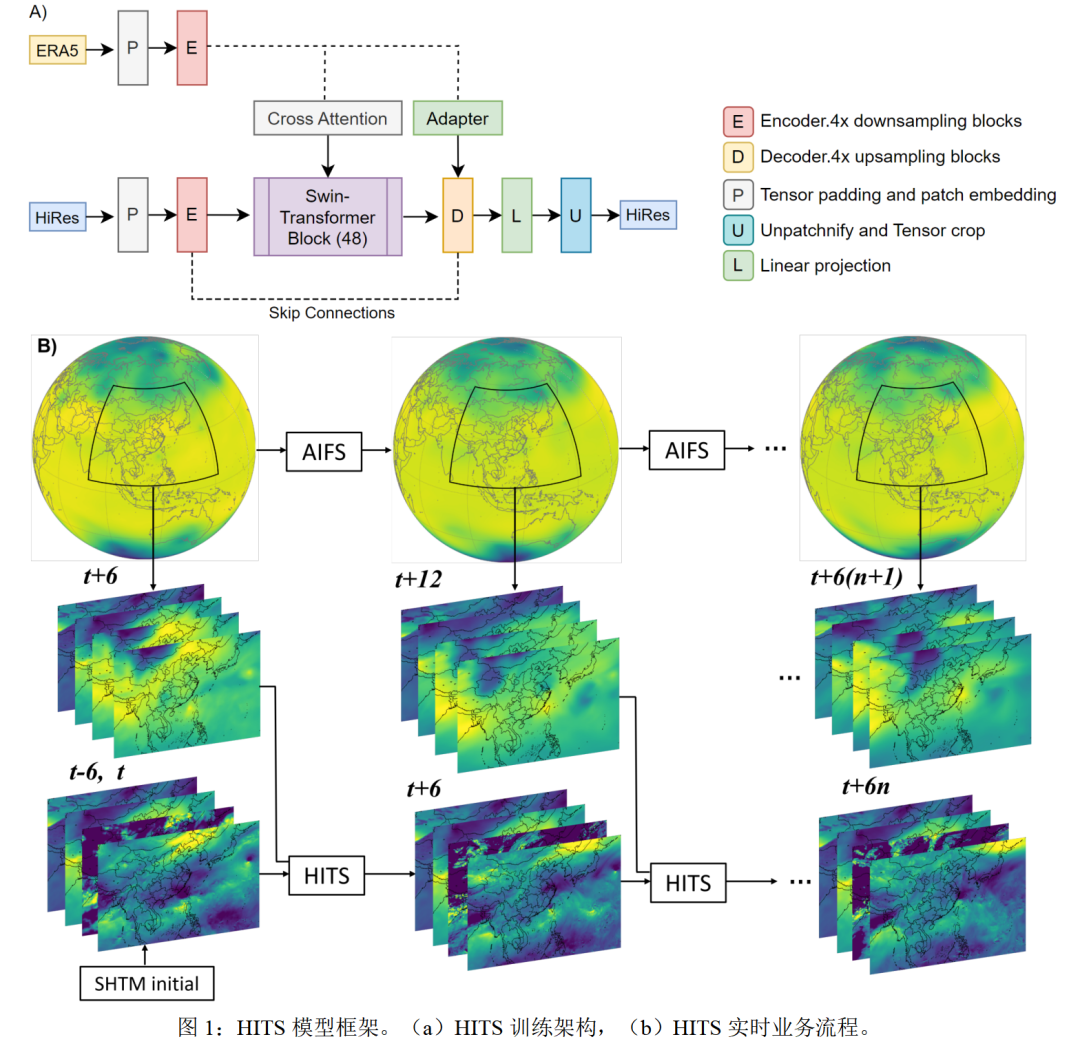 针对这些瓶颈,上海市气象局数值预报团队在上海台风智能模型ISTM(降尺度模型)的基础上,联合复旦大学等高校研发了面向台风中期预报的多尺度混合训练区域智能模型海司HITS(Hybrid Intelligent Typhoon System),为提升台风中期预报能力提供了新的技术路径和框架支撑。HITS模型主要具有以下几个方面的特点: