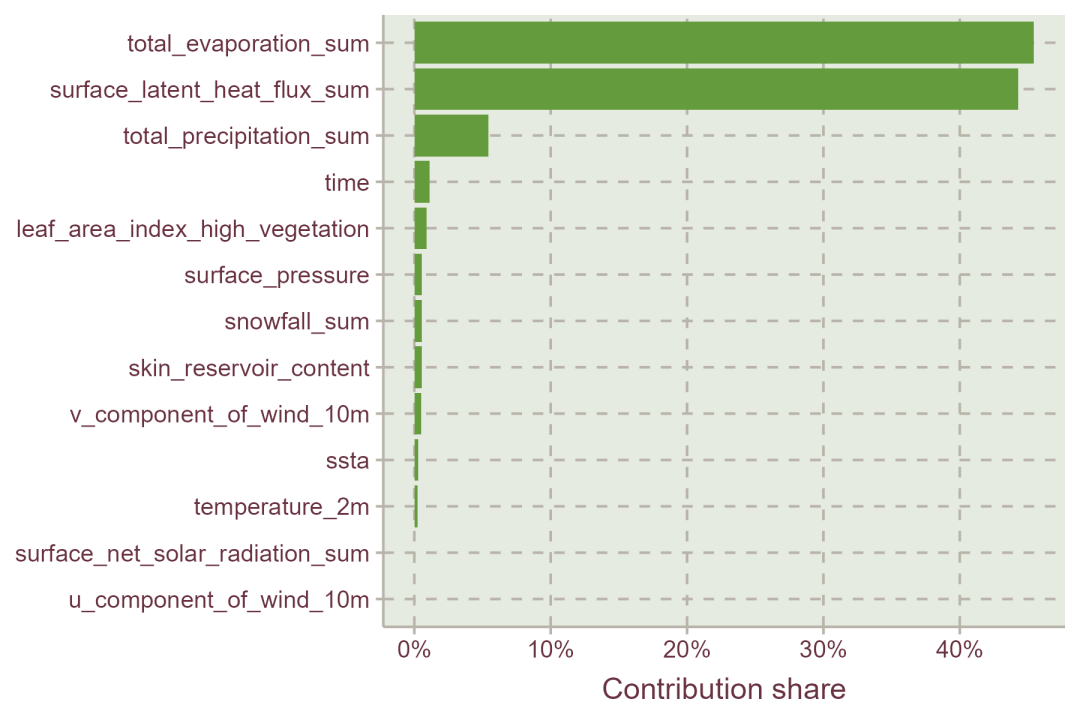 runoff_sum = β0 + β1 · temperature_2m + β2 · snowfall_sum + ··· + ε
