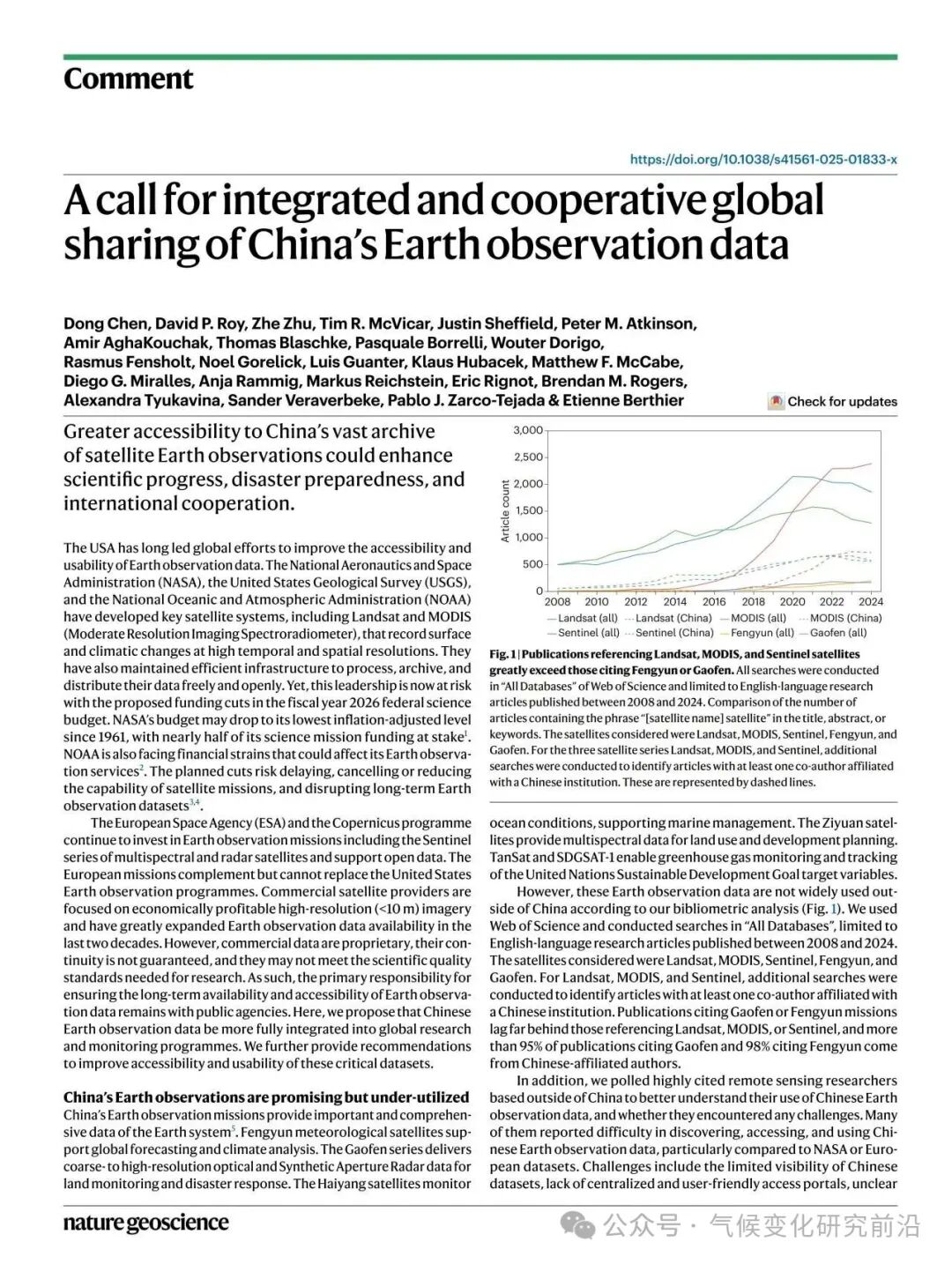 Chen, D., Roy, D.P., Zhu, Z. et al. A call for integrated and cooperative global sharing of China’s Earth observation data. Nat. Geosci. (2025).