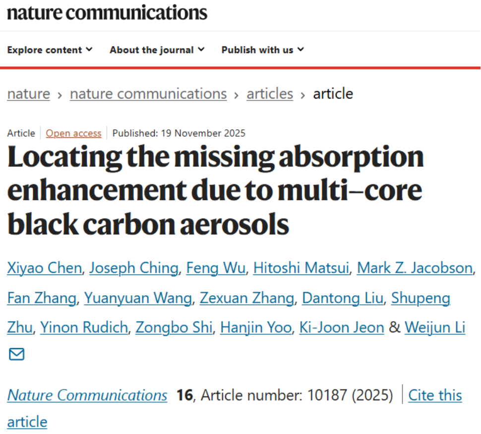 Chen, X., Li, W. et al. Locating the missing absorption enhancement due to multi-core black carbon aerosols.Nature Communications 16, 10187 (2025).