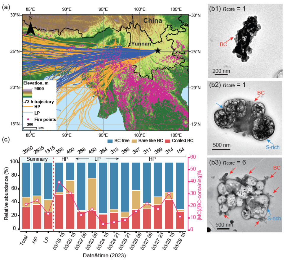 Chen, X., Li, W. et al. Quantifying evolution of soot mixing state from transboundary transport of biomass burning emissions. iScience 26, 108125, (2023).