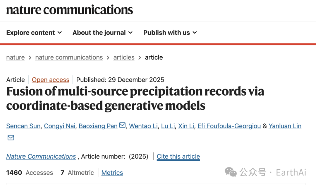 Sun, S., Nai, C., Pan, B. et al. Fusion of multi-source precipitation records via coordinatebased generative models. Nature Communications (2025).https://www.nature.com/articles/s41467-025-67987-9