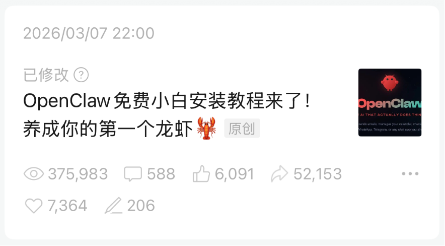 发布完 OpenClaw免费小白安装教程,大家的热情极其高涨!