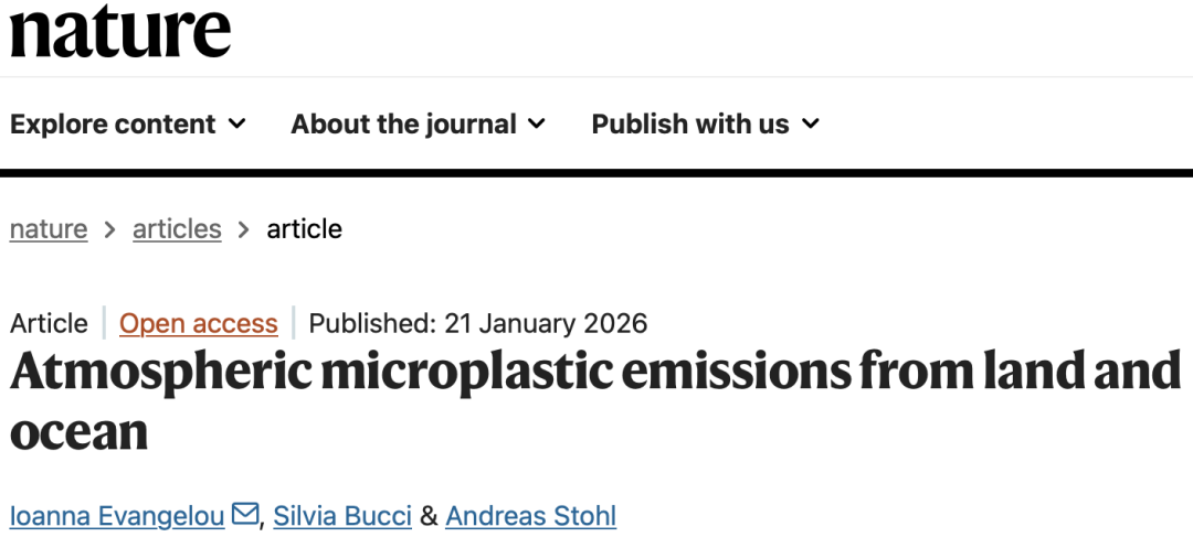 近日,奥地利维也纳大学Ioanna Evangelou团队研究了来自陆地和海洋的大气微塑料排放。该项研究成果发表在2026年1月21日出版的《自然》杂志上。