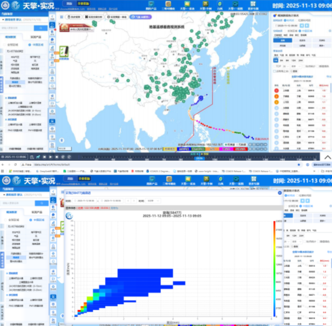 该数据实现2018年1月1日至今台站上传的雨滴谱仪观测数据和地面自动站分钟观测数据整合,通过一致性检查、界限值检查、下落末速度检查等多个处理步骤,可以有效识别非降水粒子。质控后的气象要素包括2400余个国家地面站逐分钟雨滴粒子级别、雨滴粒子数,反演计算数浓度等。实时数据产品现已接入国家级天擎实况应用展示。自2023年7月首次应用于中央气象台早间会商,该产品已为国省天气会商、加密会商等提供应用服务17次,并有力支撑亚运会、第十五届全运会等重大活动保障。