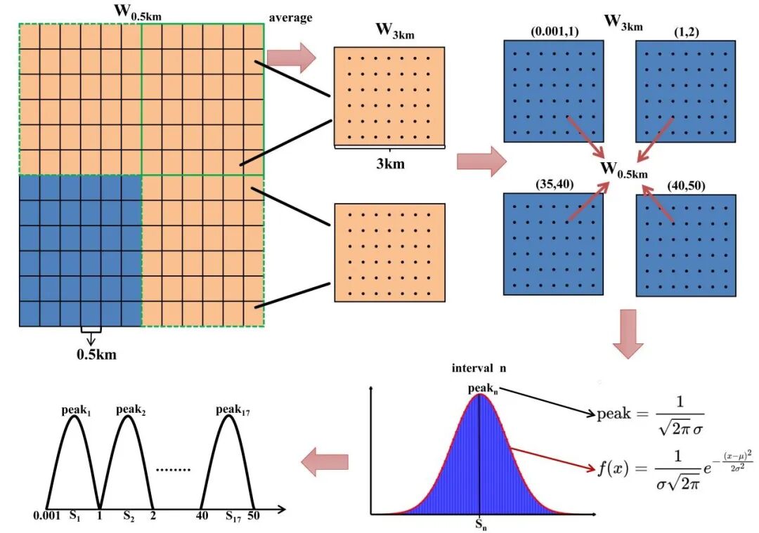 云微物理方案尺度自适应。发现微物理方案中气溶胶活化及其后续的云滴凝结过程对分辨率变化最为敏感。通过引入垂直速度与过饱和度等变量的分档正态分布函数以显式刻画次网格非均匀性,实现了微物理过程尺度自适应。
