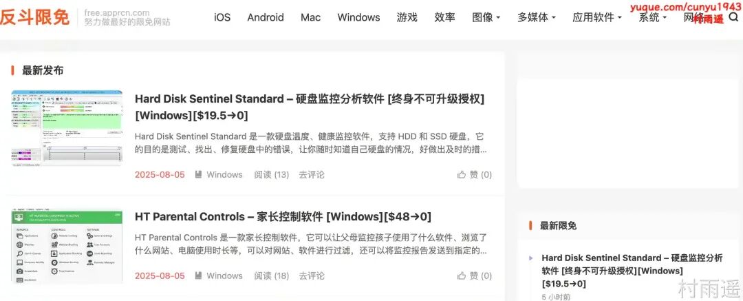 汇总各类限免信息的网站,包括 iOS 限免、Stream 限免、软件限免等。