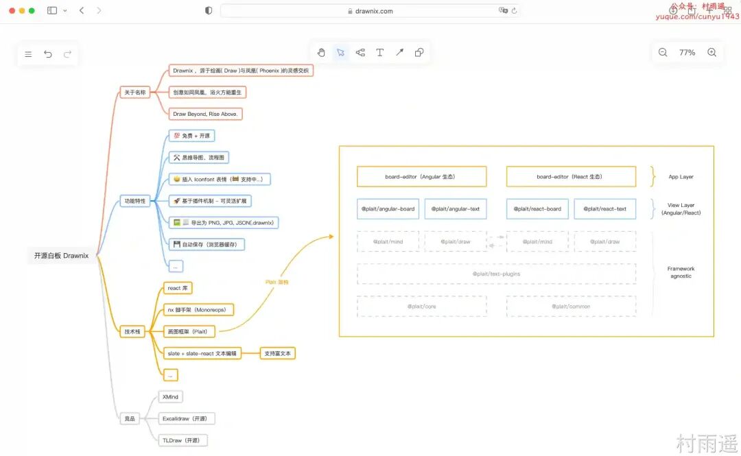 开源白板工具(SaaS),一体化白板,包含思维导图、流程图、自由画等。