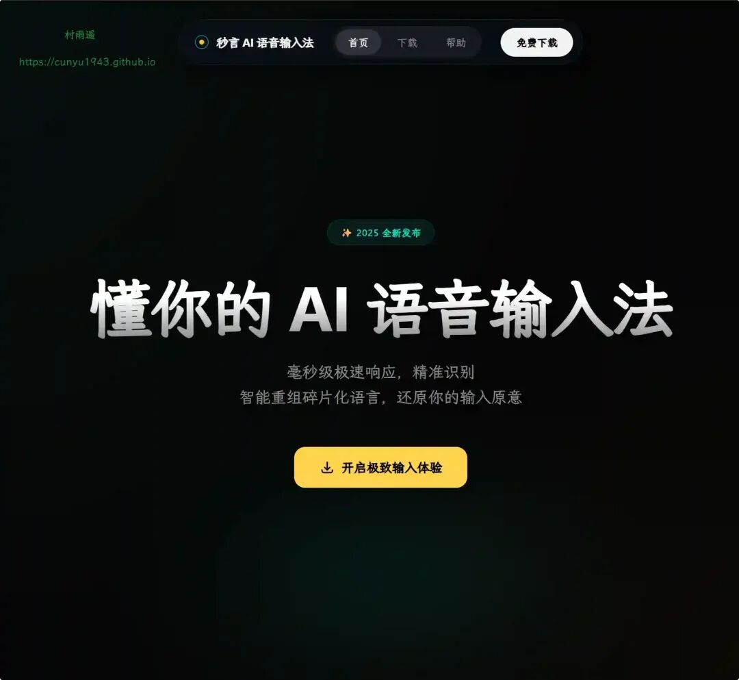 毫秒级极速响应,精准识别。智能重组碎片化语言,还原你的输入原意。懂你的 AI 语音输入法。