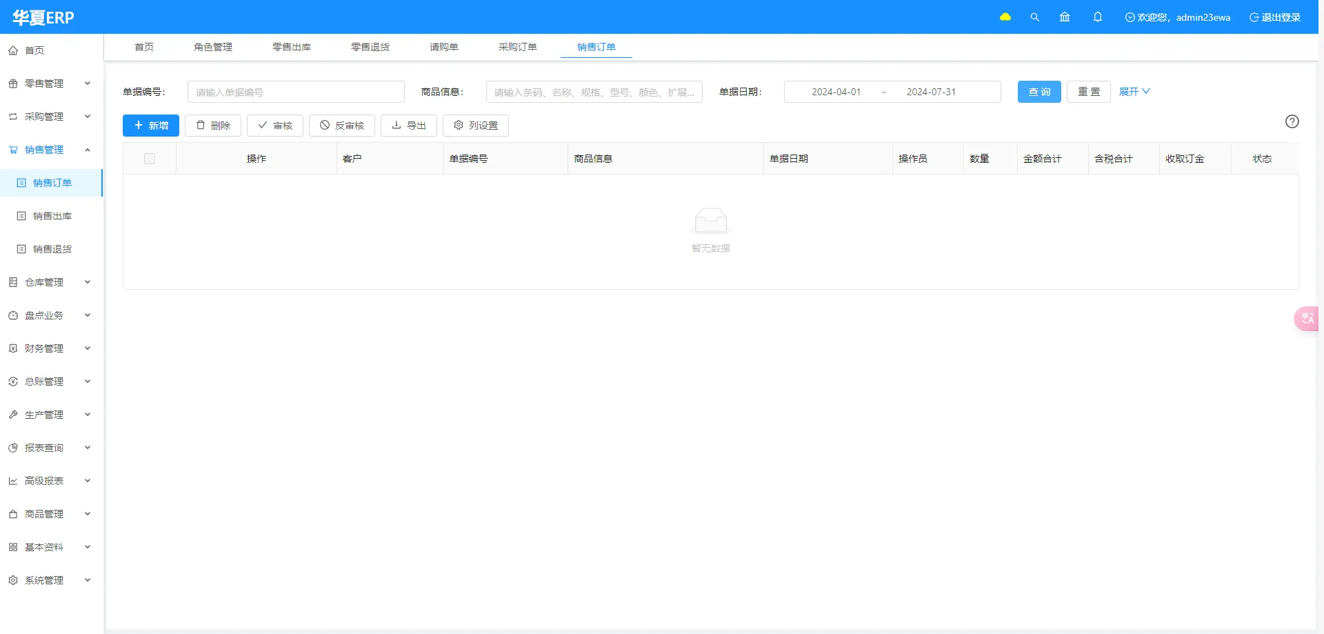 系统专注于: 进销存+财务+生产功能。核心模块包括零售管理、销售管理、采购管理、仓库管理、财务管理、报表查询和系统管理。
