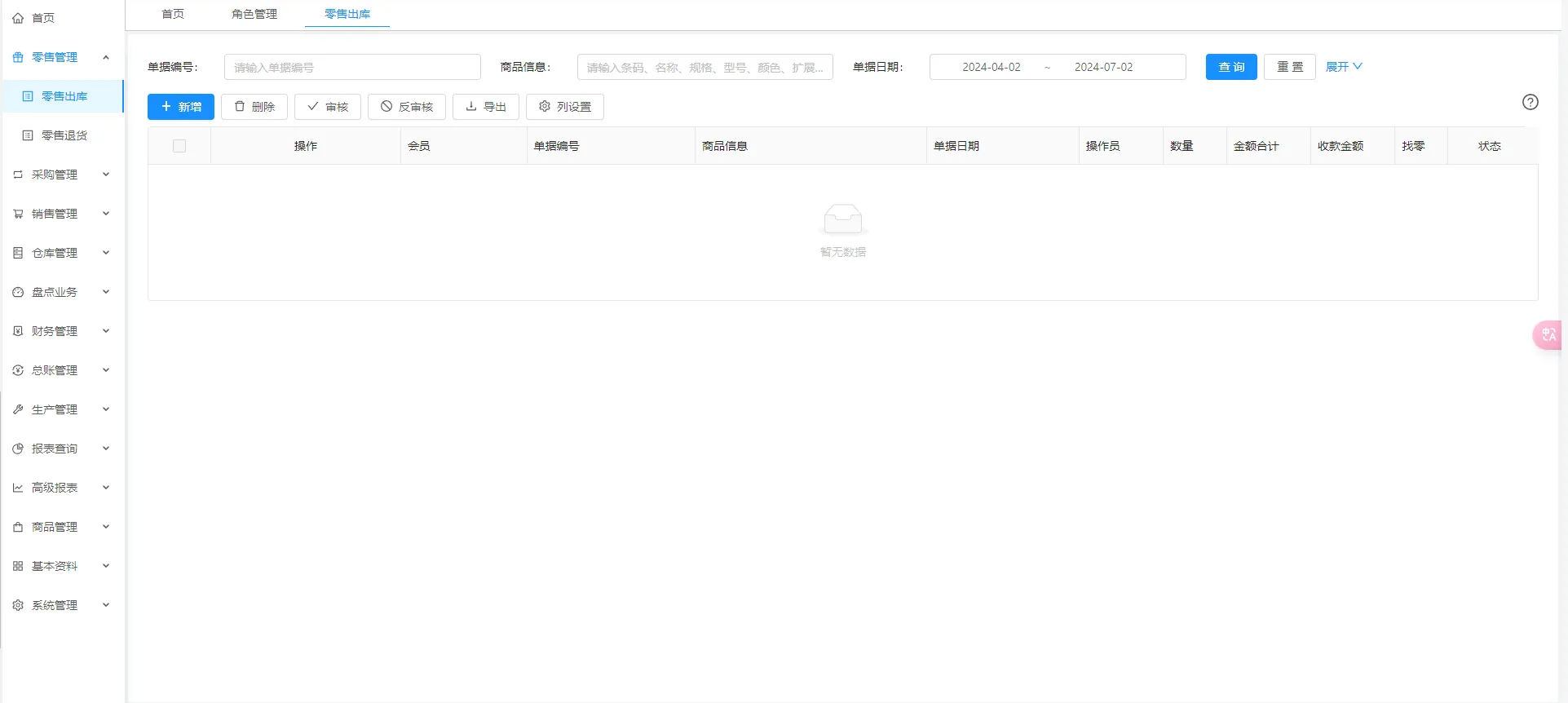 - 零售管理:主要模块分为零售出库和退货两个模块。