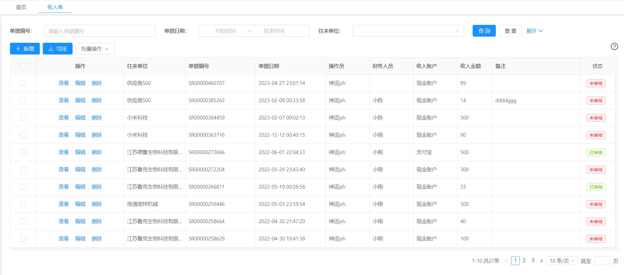 - 财务管理:管理收入支出的所有信息,用于后续报表生成。核心模块分为收入单、支出单、收款单、付款单、等6大模块。