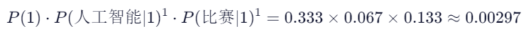 ["人工智能", "比赛"] 的后验概率新文档词频:人工智能:1, 比赛:1