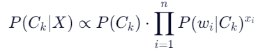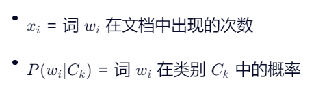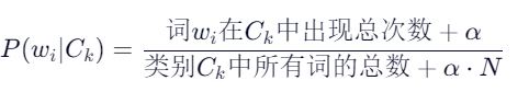 ⚠️ 注意:分母是该类别的总词数(不是文档数),因为多项式模型关注的是生成过程中的词频。