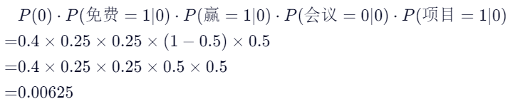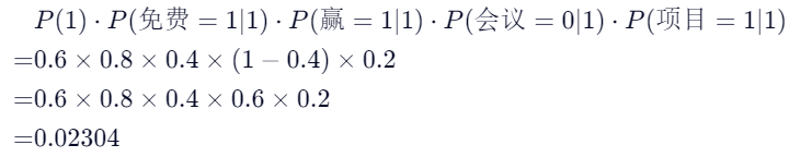 邮件ID | 内容(分词后) | 二值向量(词汇表:["免费", "赢", "会议", "项目"]) | 类别 |