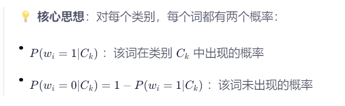 伯努利朴素贝叶斯 | 二值特征(0/1) | “这个词有没有出现?” | 短文本、关键词检测、垃圾邮件 |