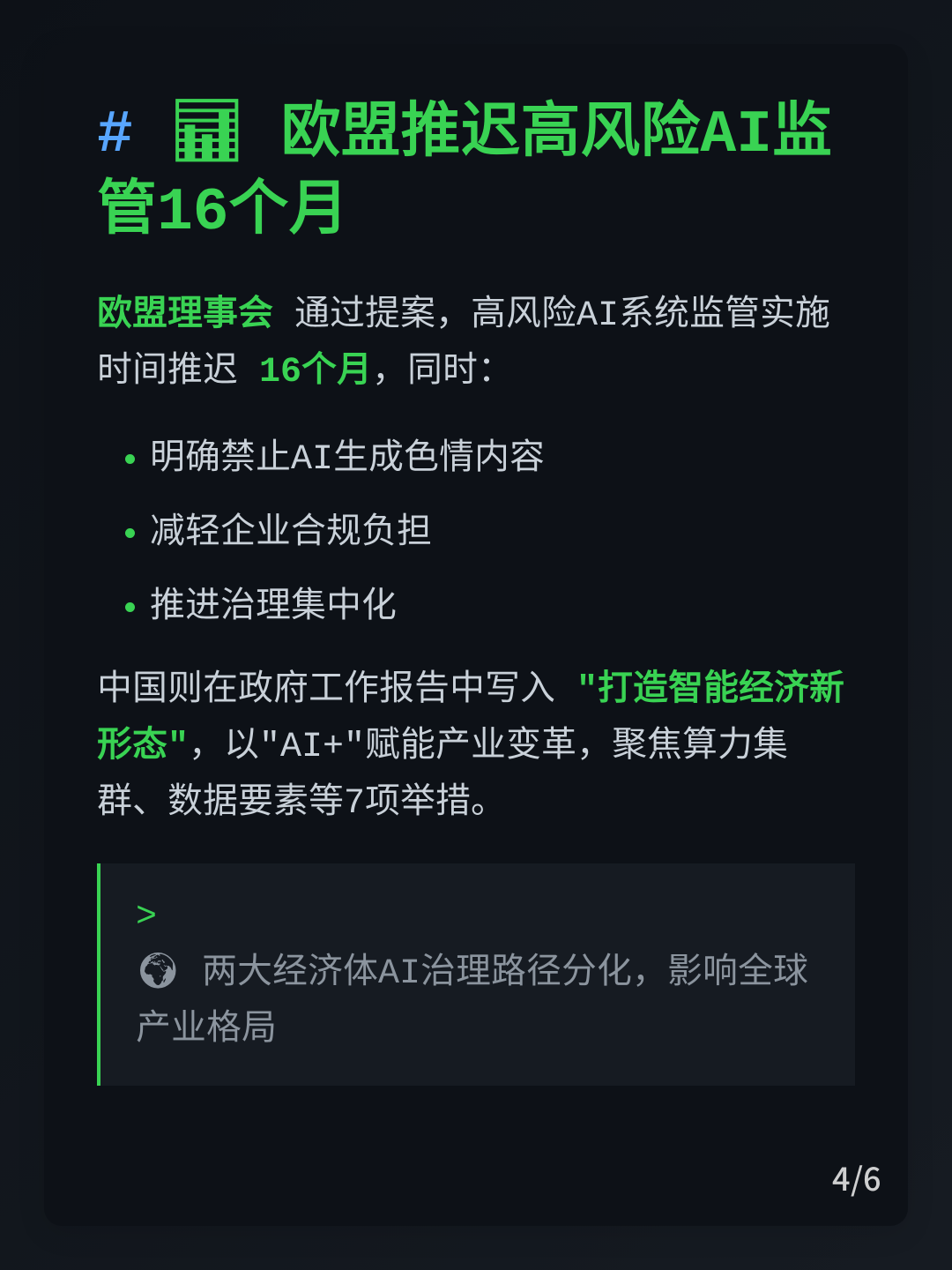 04政策动态📊 欧盟推迟高风险AI监管16个月
