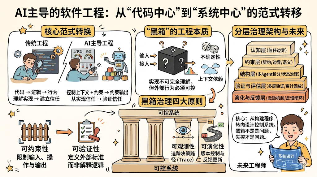 在无法完全理解系统实现的前提下,如何构建一个可控、可验证、可演化的 AI 主导的软件工程体系?
