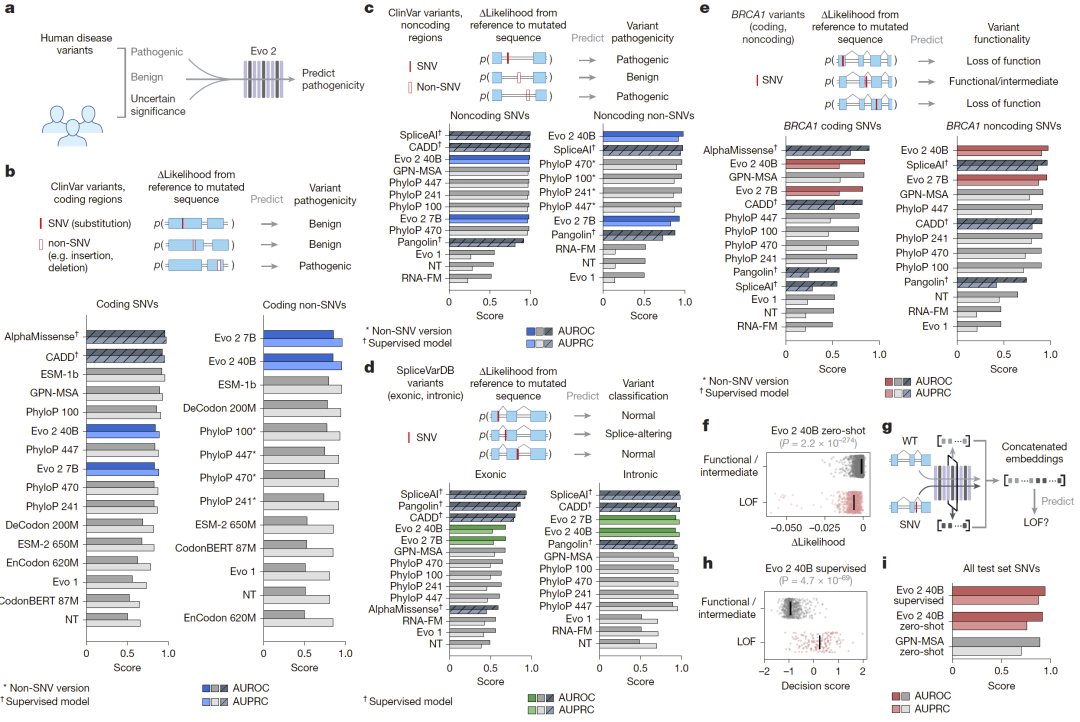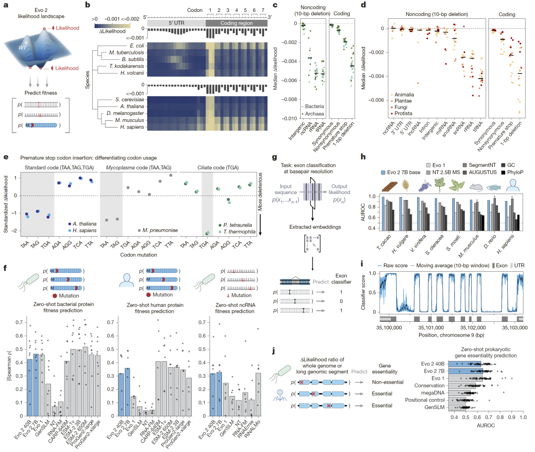 图3:Evo 2 在基因变异与功能预测中的表现。