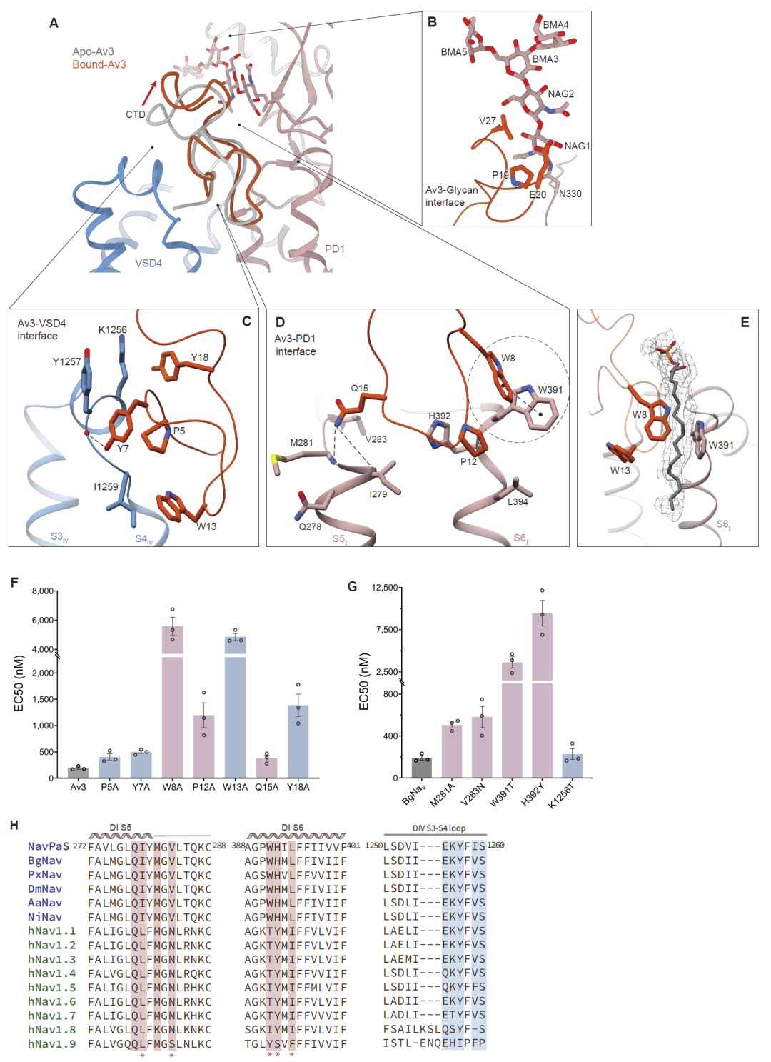 图2|Av3和LqhαIT诱导的NavPaS构象变化。