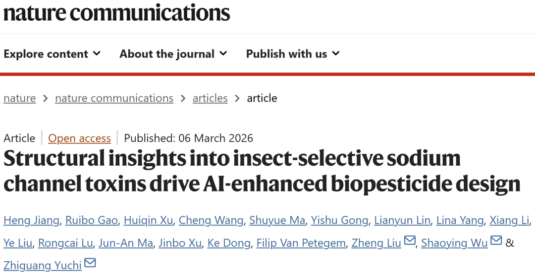 Jiang, H., Gao, R., Xu, H. et al. Structural insights into insect-selective sodium channel toxins drive AI-enhanced biopesticide design. Nat Commun (2026).
