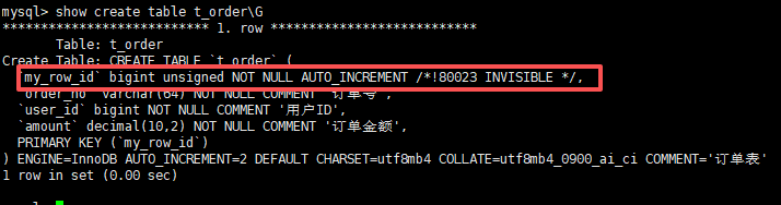 `my_row_id` bigint unsigned NOT NULL AUTO_INCREMENT /*!80023 INVISIBLE */,