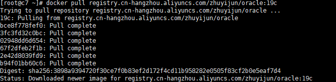 docker pull registry.cn-hangzhou.aliyuncs.com/zhuyijun/oracle:19c