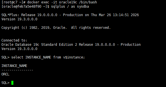 [root@c7 ~]# docker exec -it oracle19c /bin/bash