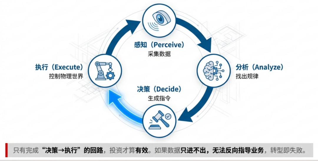 这其实就是我经常在数字化转型培训中讲到的“转型飞轮”只有这个飞轮能转起来,转型才会成功,而其中的“数据分析”是最重要的一环!