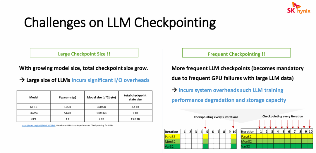 在万亿参数LLM训练时代,检查点机制已成为刚需:它不仅保障高可用性,还支持模型迭代,但海量参数与优化器状态(动量、方差)导致单次TB级I/O洪峰和高频写入,严重挤占GPU算力(MFU暴跌)。传统架构下,PCIe瓶颈、DRAM溢出风险让存储成“罪魁祸首”。SK Hynix的方案直击痛点:优化器卸载至存算一体SSD,实现“零开销”检查点;异步DRAM缓冲+CXL内存扩展,动态冷热分层;混合精度压缩对冲容量爆炸。你是否好奇,PCIe带宽真能支撑梯度双向传输?存算一体能否颠覆DAOS等并行文件系统?这些前沿解法,正重塑AI基础设施,值得存储从业者深挖。