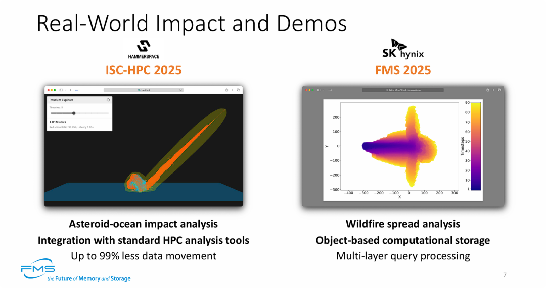 - 极大地缓解了 I/O 与网络带宽瓶颈(Hammerspace 案例):在复杂的小行星撞击模拟中,通过将计算逻辑下推,系统成功减少了高达 99% 的底层数据移动。这在传统 HPC 架构中是难以想象的,它直接印证了在存储端进行数据预过滤,仅将极少量的高价值分析结果传输给计算节点,能够彻底打破“内存墙”和“I/O墙”。