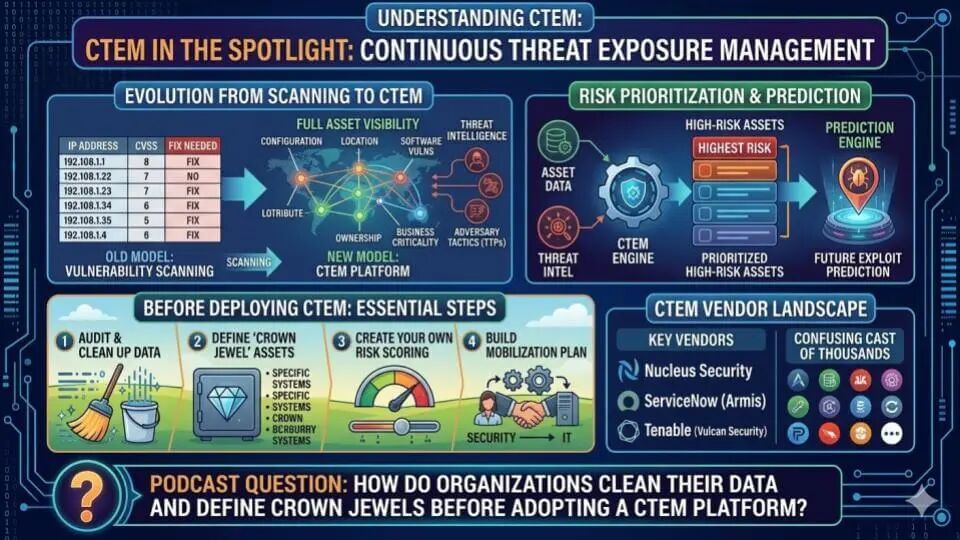 问题是 CTEM 的成败取决于数据。首先的问题虽乏味但重要:数据是否可访问、可获取且格式可用?数据可用后,下一步是上下文:哪些资产关键,关键路径是什么,谁有访问权,系统配置是否正确,MFA 是否到位?这些前期工作往往被忽略,人们直接跳到工具。
