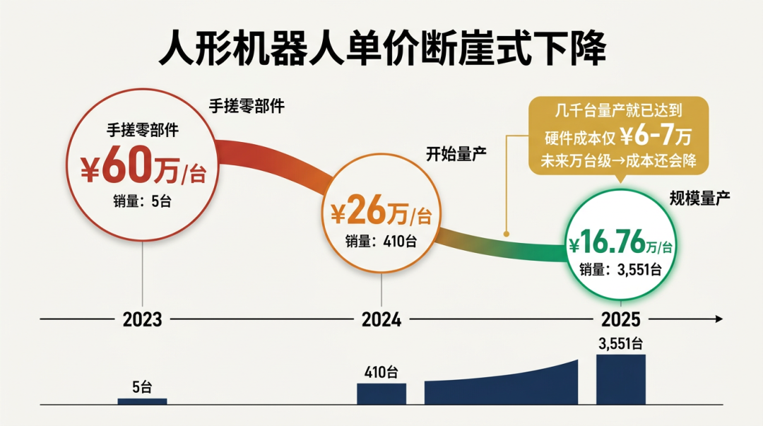 2025年宇树机器人卖了3551台人形机器人,单价降到了16.76万。