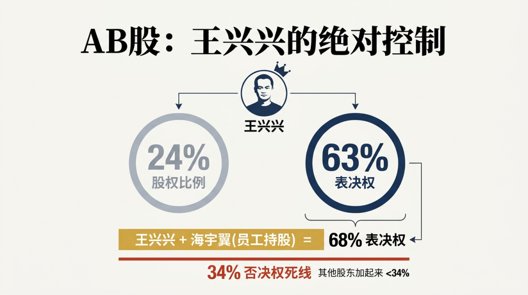 王兴兴加上海宇翼,后者是员工持股平台,有超过68% 的表决权,也就意味着这家公司在很长一段时间内,走向都只由自己来定,这点再次强调,非常重要。
